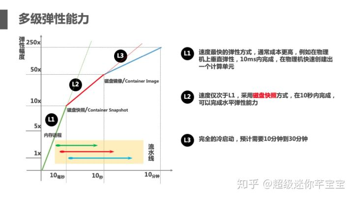 L2 是通过将应用程序启动后在 RAM 中的指令和数据结构 dump 到磁盘文件,只需要在机器之间拷贝文件即可以达到横向弹性的能力,这个时间消耗主要是数据的网络传输时间+内存拷贝时间,大约在5秒左右就可以完成。L2 的成本开销只有网络磁盘容量,开销极低,可忽略不计。