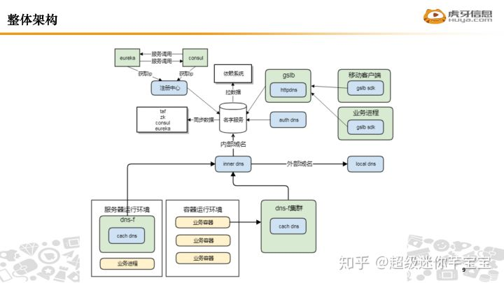 在这个过程中, DNS解析是天然的分布式架构,每一层都会有缓存,上一层出现问题挂掉,下一层都会有缓存进行容灾。另外,整个 DNS 协议支持面广,包括手机和 PC,我们用的编程框架里也有 DNS 解析器,服务器也会配 DNS 解析引擎,因此,DNS 在虎牙的基础设施中是很重要的部分。
