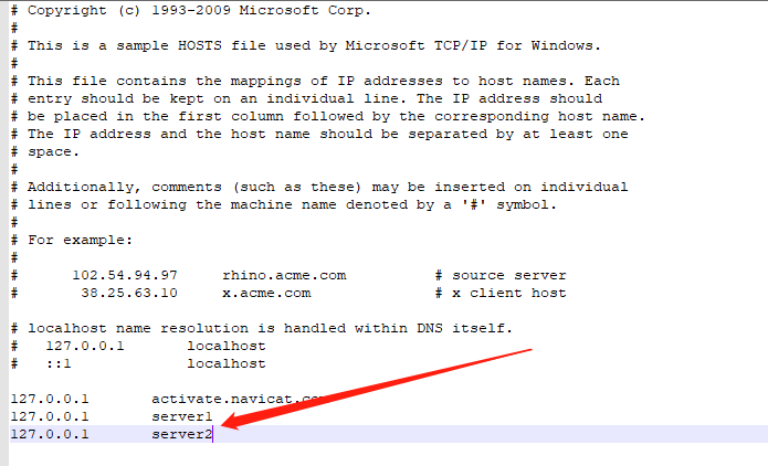 首先修改hosts文件,在文件下面添加以下两行代码