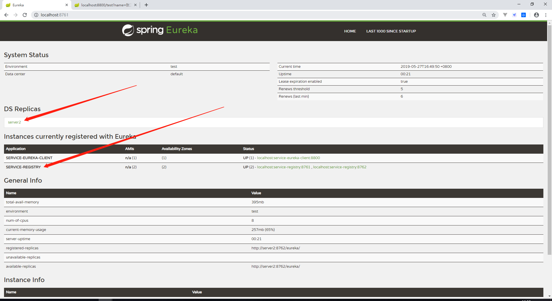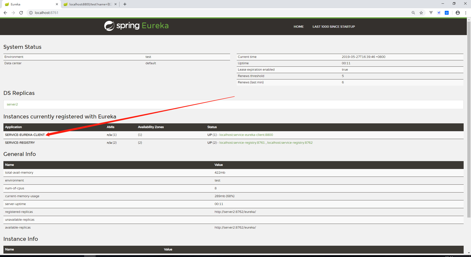 下面我们关闭server1的eureka-server,之后访问http://localhost:8762