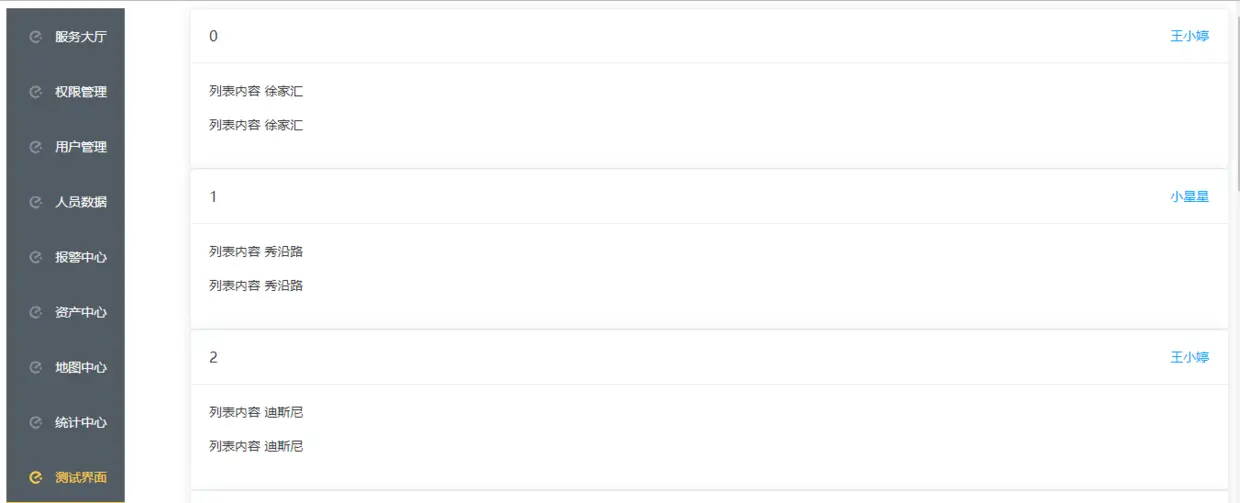 5:效果如下,请求过来的json数据渲染在前端界面,形成循环列表。