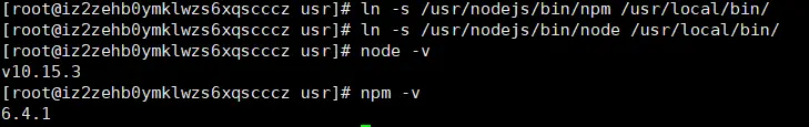 ln -s /usr/nodejs/bin/npm /usr/local/bin/