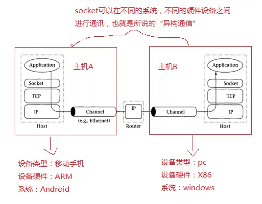 这跟管道是不同的,管道只能用于本机的进程间通信。另外socket能用于异构系统间进行通信: