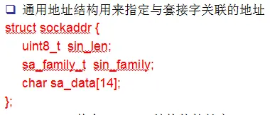 为什么要有通用地址结构呢? 原因在于Socket不仅仅只能用于Tcp/Ip编程,它还能够用于Unix域协议编程,不同的协议地址结构形式可能有不一样的地方,所以说,这里存在一个统一形式的地址结构,可以用于所有的协议编程。