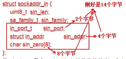 该字段总共有14个字节,实际上跟sockaddr_in最后面三个字段的总和是一样大小的: