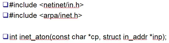 这个函数的功能跟下面这个函数的功能一样,都是将用户识别的地址转换成网络字节序,将存放在inp这个结构体中,第二个参数是一个输出参数。