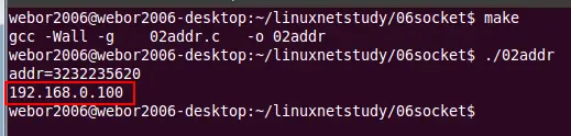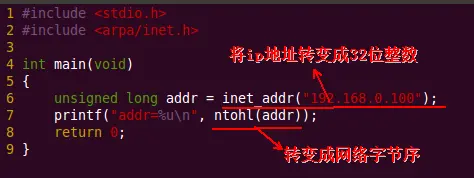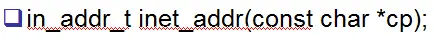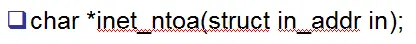 为什么要有地址转换函数呢?因为我们平常人为认识的地址并不是32的数字,我们比较习惯的地址类似于这样:"192.168.0.100",而我们编程的时候,更多的是用的32的数字,所以需要引入地址转换函数,如下: