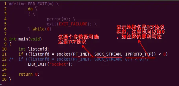 if ((listenfd = socket(PF_INET, SOCK_STREAM, IPPROTO_TCP)) < 0)