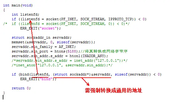 【提示】:实际编程中,通常是填充sockaddr_in地址结构,最终再强制转换成通用的sockaddr地址结构。
