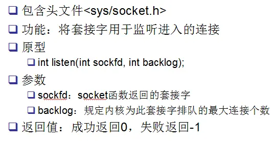 它代表了socket的并发最大连接个数。 另外还得注意,套接字有被动套接字和主动套接字之分,当调用listen之后,该socket就变动被动套接字了,需要由主动套接字来发起连接,主动套接字是用connect函数来发起连接的。