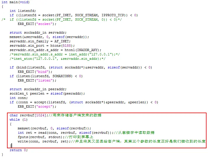 void echo_srv(int conn)//由于这个函数的意义就是回显消息给客户端,所以改一个函数名