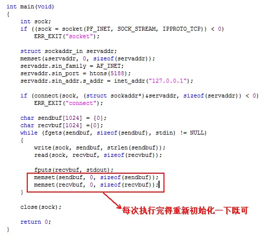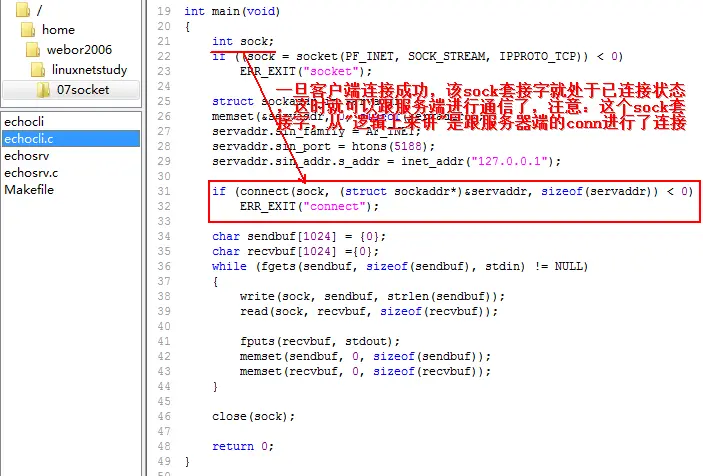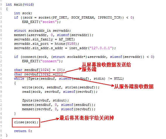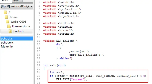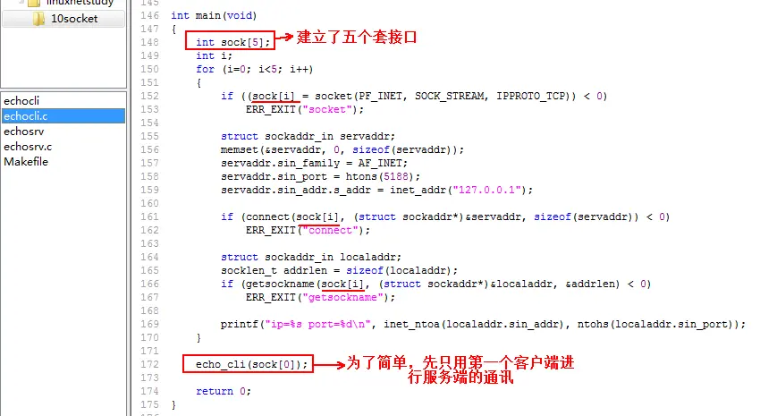 接下来,开始编写客户端的代码:echocli.c 首先创建一个socket: