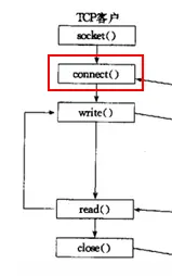 当创建套接口时,也是一个CLOSED状态,这里也未标明,接着再调用connect进行主动打开,这时的套接口就称为主动套接口,它可以用来发起连接的: