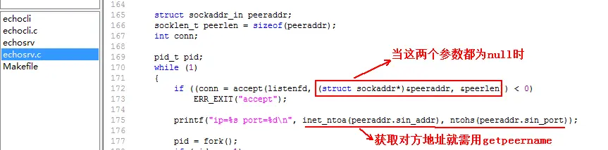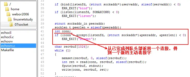 接下来,则进行数据的接收,并将数据回显给客户端: accept函数会返回一个新的套接字,注意:此时的套接字不再是被动套接字,而变为了主动: