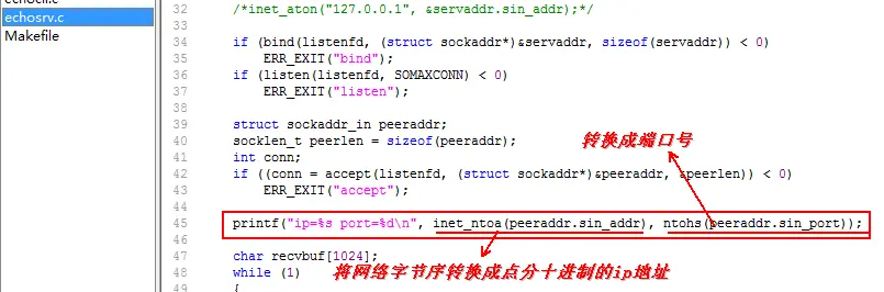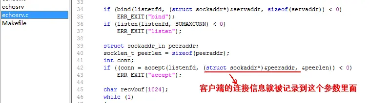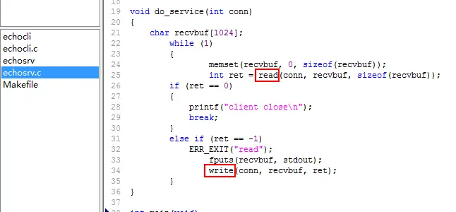 首先编写服务端:echosrv.c
