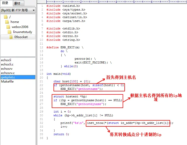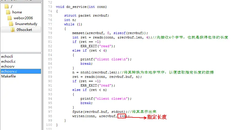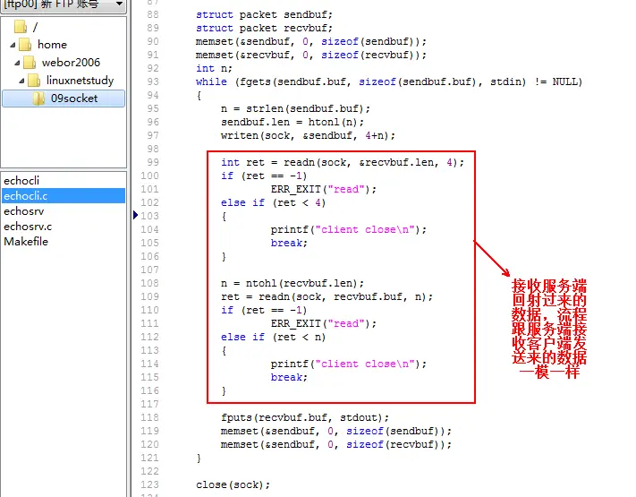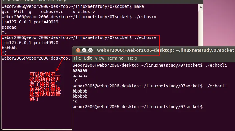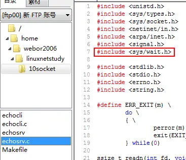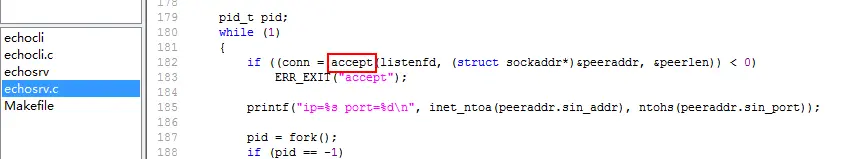 就实现了客户端与服务器端的socket通讯了,最终的代码如下: echosrv.c【服务端】: