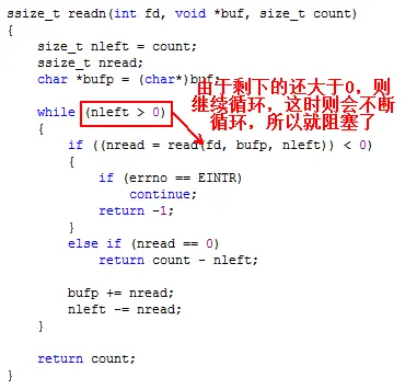 原因在于,read函数没有机会返回0: