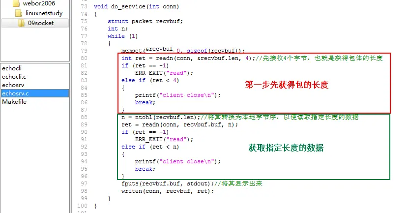 下面,则开始从该套接字中读取客户端发过来的数据: