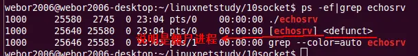 对于上面运行程序,当客户端退出之后,服务端会产生僵进程: