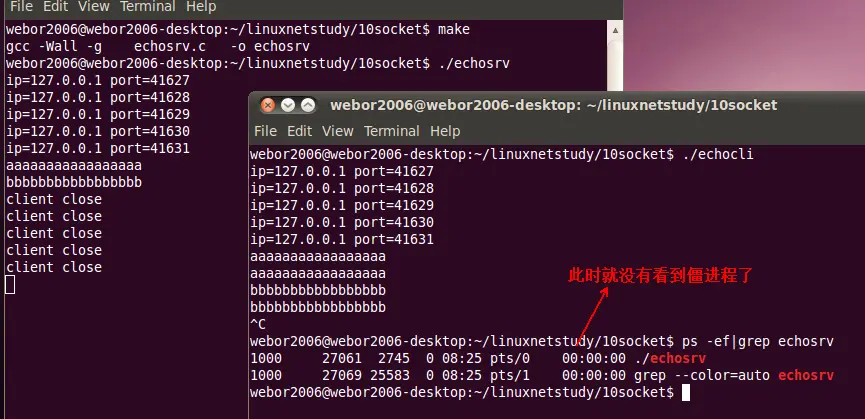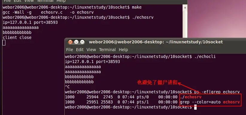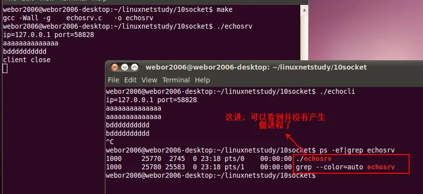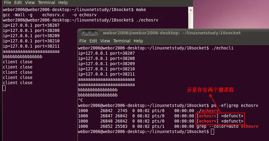 编译运行,看是否解决了僵进程的问题: