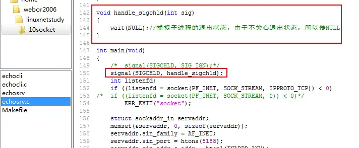 第二种方式,则可以捕捉SIGCHLD信号来进行忽略,具体代码如下: