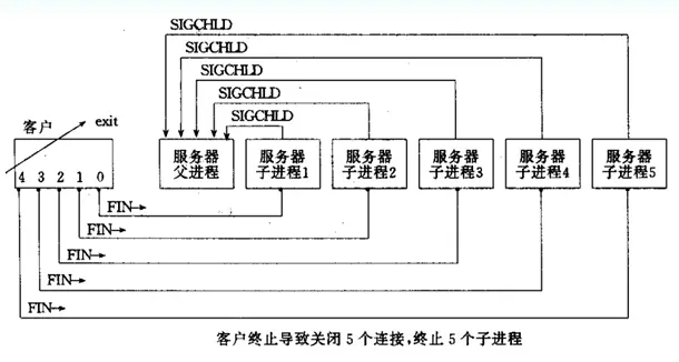 在关闭连接时,会向服务器父进程发送SIGCHLD信号,具体如下图: