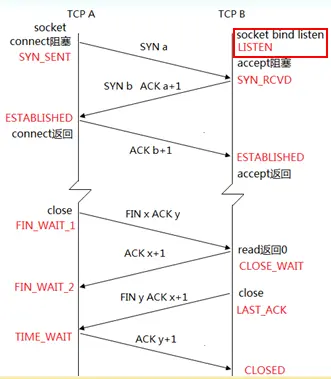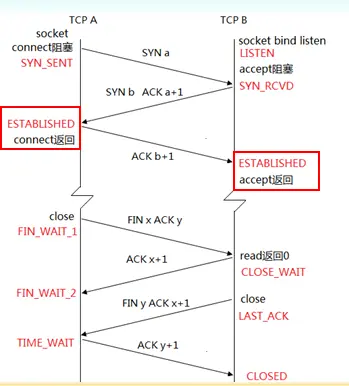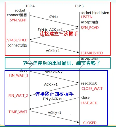 通过这个状态的学习,进一步复习一下“连接建立三次握手、连接终止四次握手【下面会分别来介绍】”,下面首先来看一张图:
