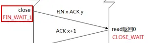 这时服务器端收到一个终止的TCP段,这时read就会返回为0,实际上当服务端收到这个TCP段之后,服务端会对它进行确认,则会向客户端发送"ACK+1"的TCP段,这时服务端的状态为CLOSE_WAIT: