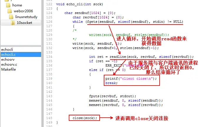 void echo_cli(int sock)//将之前这一段代码封装成一个函数,回显客户端,让其代码更加整洁。