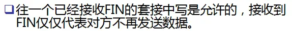 对于上面做的一个实验,就是服务端先关闭之后,然后客户端还可以向服务端发起数据,这是由于客户端收到FIN仅仅代表服务端不能发送数据了,如下图: