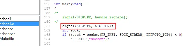 为了证明确实是收到了SIGPIPE信号,我们捕捉一下该信号,修改代码如下: