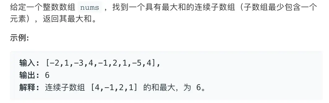 dp[i]=max(nums[i],dp[i-1]+nums[i]) 【上代码】