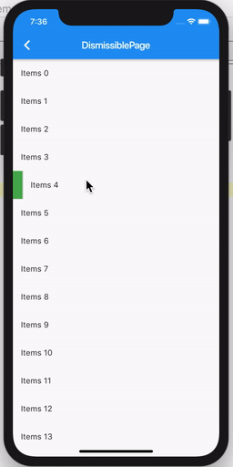 Dragging or flinging this widget in the DismissDirection causes the child to slide out of view.
