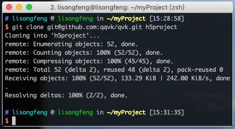 点击“复制到剪贴板”图标。打开常用的终端,进入或新建某个项目目录,比如myProject,克隆qvk的代码: