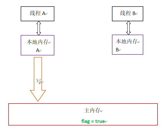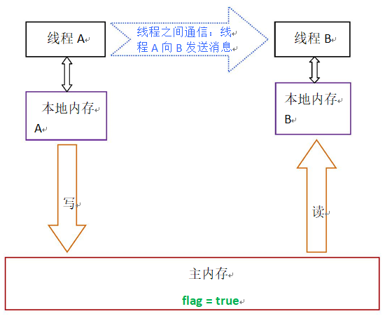 线程 A 写一个 volatile 变量,随后线程 B 读这个 volatile 变量,这个过程实质上是线程 A 通过主内存向线程 B发送消息。