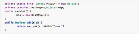 向 HashSet 中 add ()元素时,判断元素是否存在的依据,不仅要比较hash值,同时还要结合 equles 方法比较。 HashSet 中的 add ()方法会使用 HashMap 的 add ()方法。以下是 HashSet 部分源码: