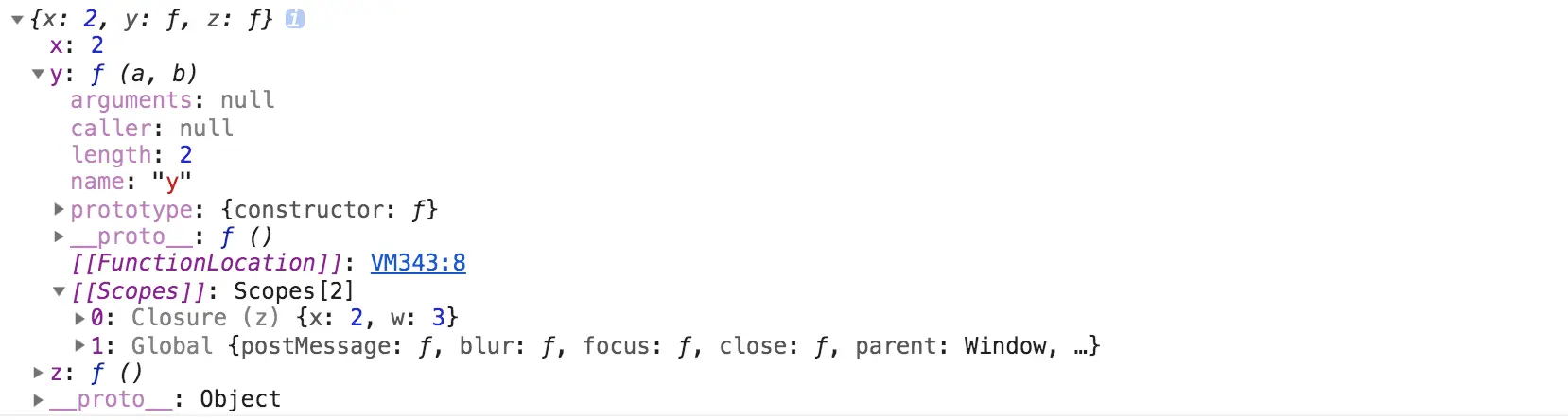 console.log(a.z(), a.x, x);