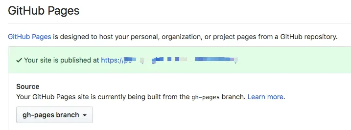 分支新建完成后,回到 GitHub,在对应的仓库下点击 Settings,翻到 GitHub Pages 栏,在下拉框中选择 gh-pages 分支来发布源码。如图: