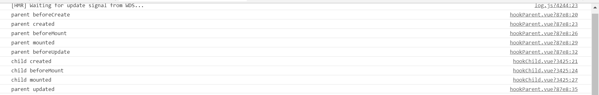 第二种情况(静态引入):import hookChild from "./hookChild" 钩子函数的运行情况如下:
