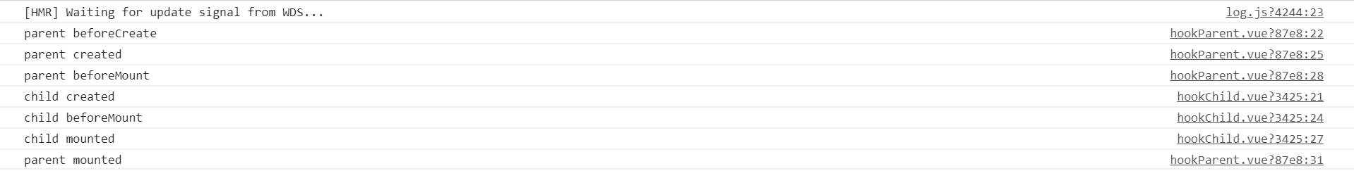 此时父子组件的钩子函数的输出结果如下所示:
