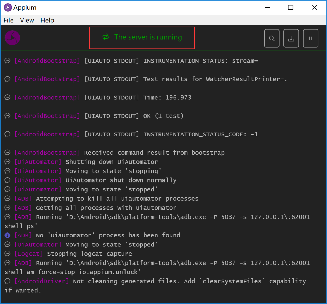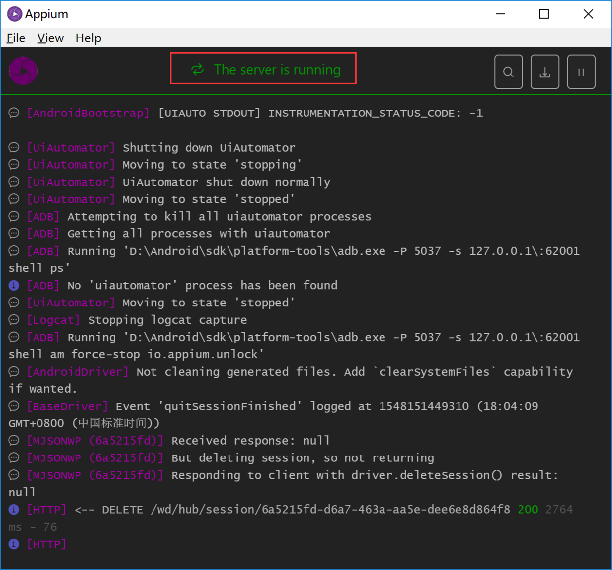 4.前提是启动的appium:提示:The server is running