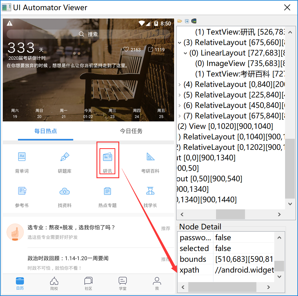 1.xpath 通过uiautomatorviewer 点击查看