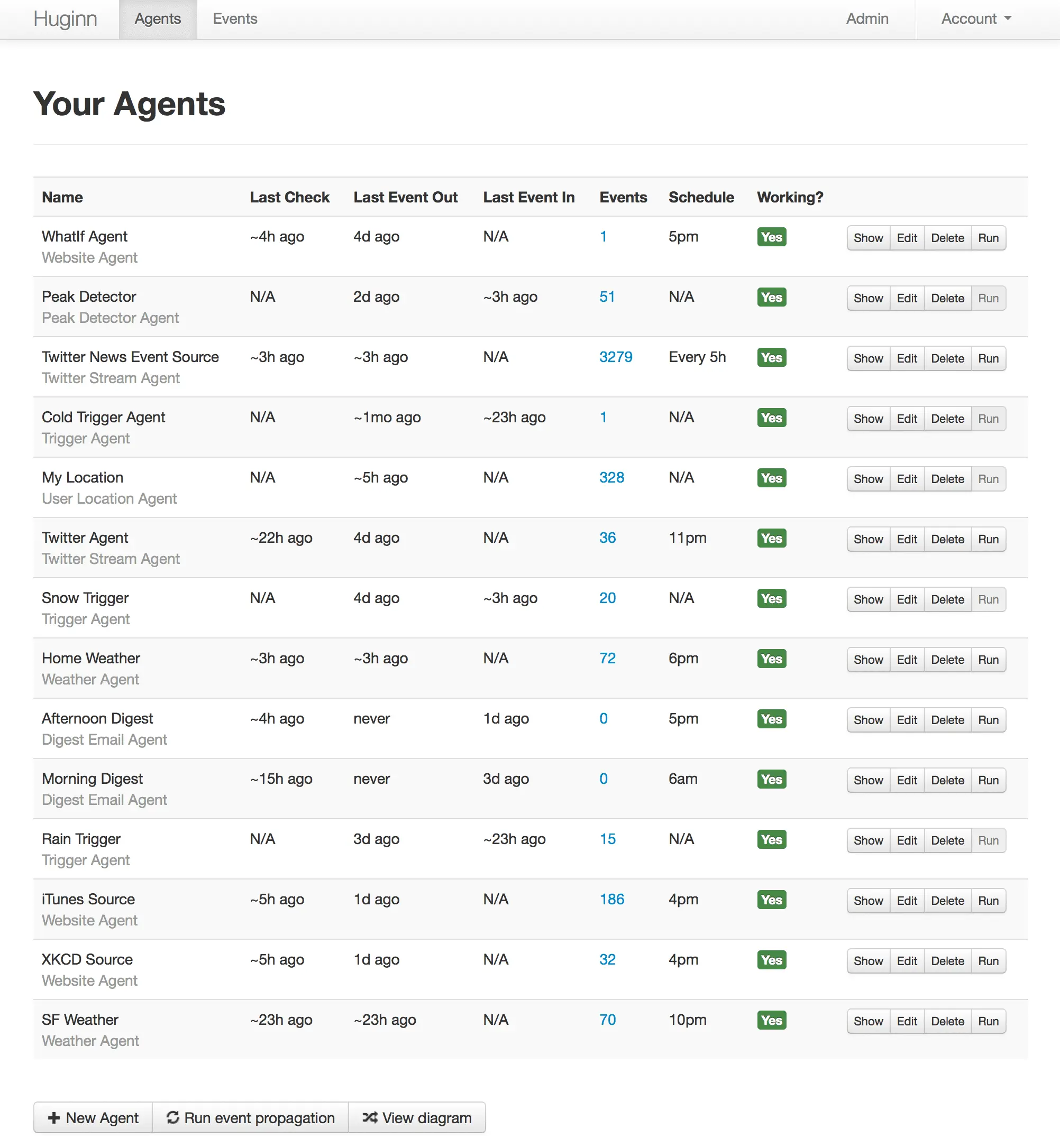 22、huginn:基于 Ruby 开发的自动化处理任务工具。可以监控事物然后根据编写好的逻辑进行处理(IFTTT),比如:监控天气然后通过微信提醒你带伞、追的小说或者动漫更新通知、聚合信息发送等。它框架稳定、生态活跃,有了它从而让你的生活更加有效率,快去试试吧