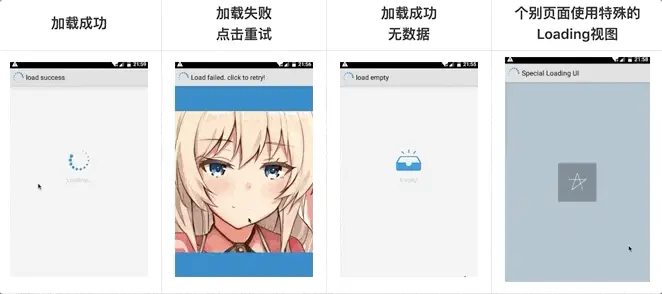 - 不需要在每个页面的布局文件中额外添加加载状态视图