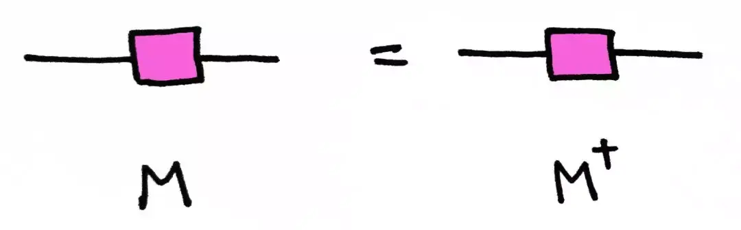 今天,我想分享一种不同的方法来描绘矩阵,它不仅用于数学,也用于物理、化学和机器学习。基本想法是:一个带有实数项的 m×n 矩阵 M 可以表示从 R^n→R^m 的线性映射。这样的映射可以被描绘成具有两条边的节点。一条边表示输入空间,另一条边表示输出空间。