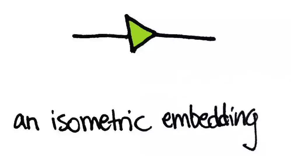 我也喜欢将等距嵌入(isometric embedding)绘制为三角形的想法: