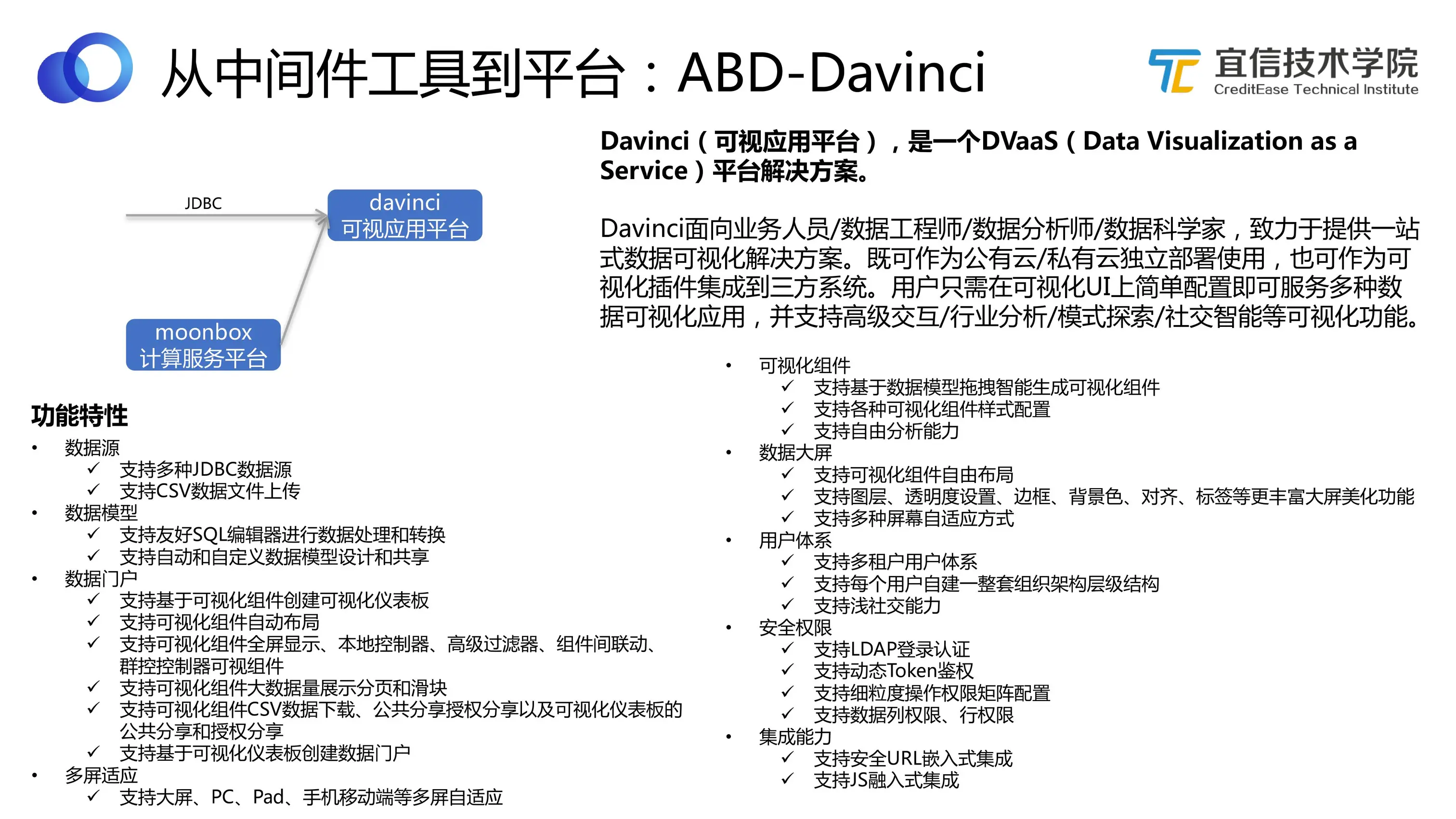 导读:宜信于2017年推出了一系列大数据开源工具,包括大家熟悉的DBus、Wormhole、Moonbox、Davinci等,在技术社区内得到了广泛关注和好评。这些工具是如何在宜信内部应用的?它们和宜信数据中台是怎样的关系?又是如何驱动各种日常数据业务场景的?