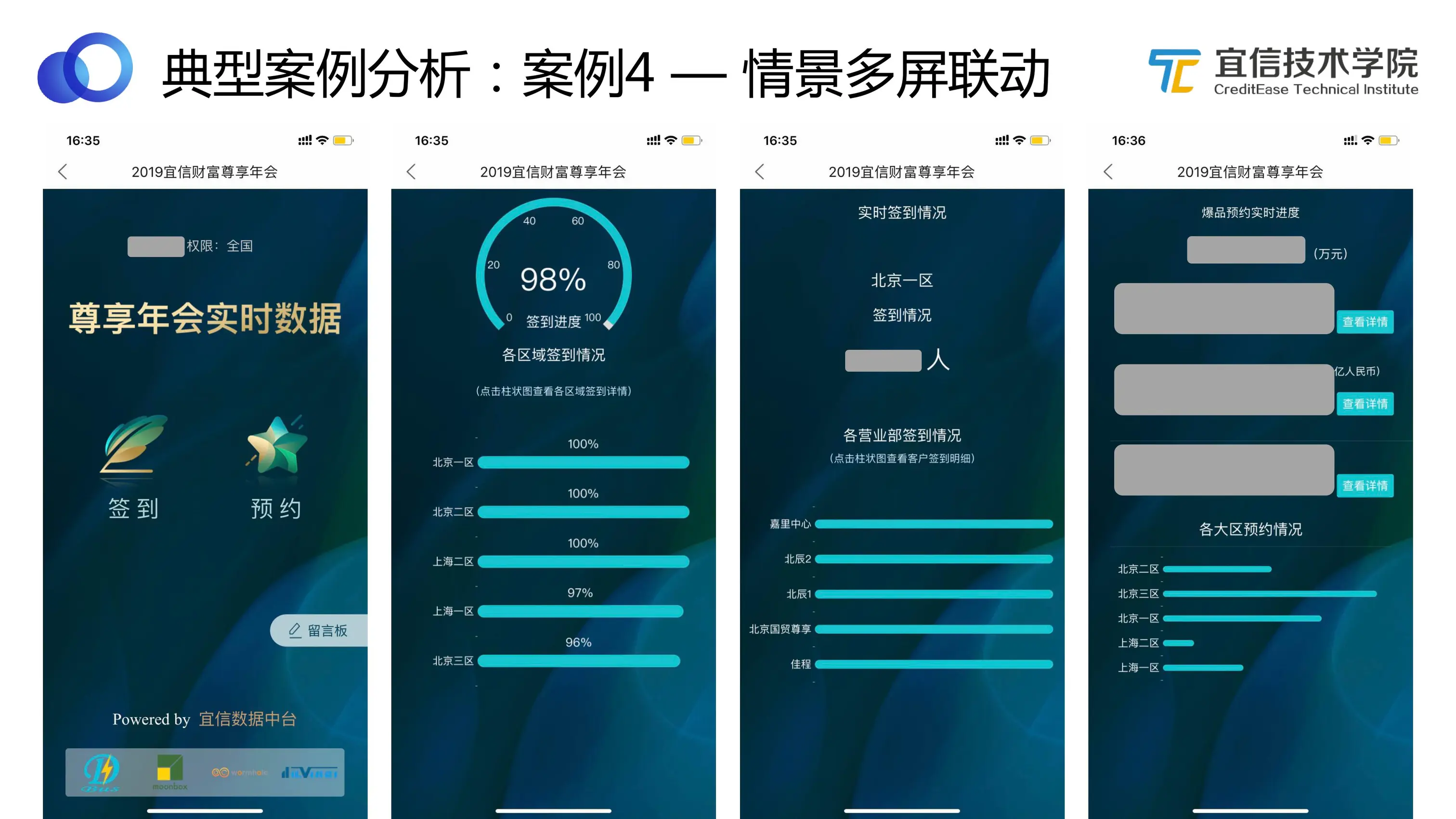 上图展示的是Davinci配置小屏的示例。图片来源于宜信的尊享年会。现场工作人员通过手机查看实时数据,了解现场情况。
