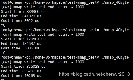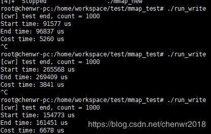 printf("[cwr] mmap write test end, count = %d\n", i);