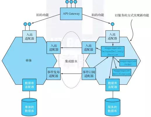 ■ 集成胶水代码:将服务与单体结合。它使服务能够访问单体所拥有的数据,并能够调用单体实现的功能。